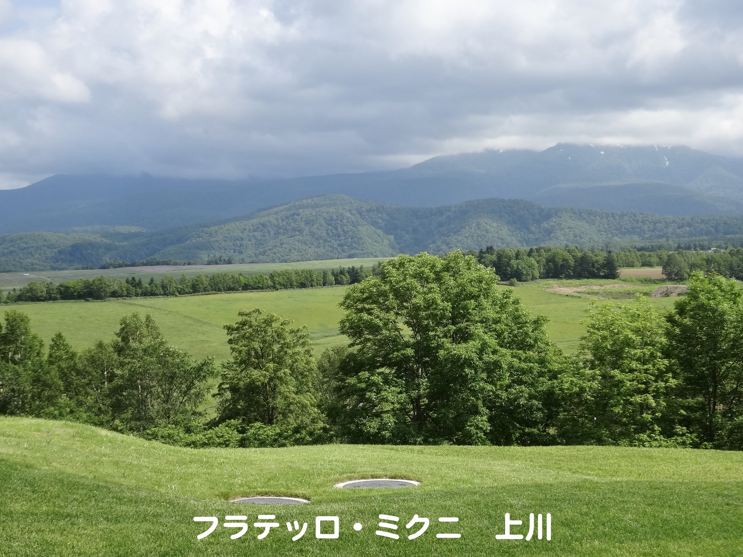 北海道のワンデーで上川町コースは好きなコース。目的は大雪山系を眺めながらの「フラテッロ・ディ・ミクニ」でワイン。8年間で何回来たことか。ここは大雪のパノラマが夏は緑一色、秋は紅葉、冬は白一色染まり、同じ席で1年に3度も違うスクリーンが楽しめる。
