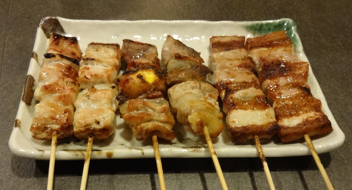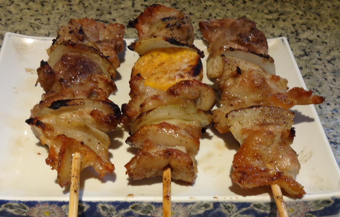 すでに満腹だが、JRで岩見沢を経由して美唄で下車。美唄焼き鳥の故郷で焼き鳥のハシゴ3軒。最初は美唄焼き鳥の発祥の店「三船」でモツ10本、次に「福よし本店」で10本、最後は少し歩いて「たつみ」で締めの10本。大満足で帰路へ。