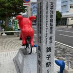 銚子駅前に「太平洋岸自転車道 起点」と記されたモミュメントがあり、銚子市から和歌山市につながる全長1200キロメートルのサイクリングロードだという。なぜ、銚子市から和歌山市なのか。醤油と何か関連があるのか調べてみたい。